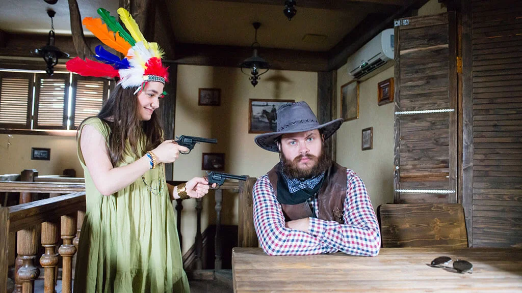 Meanwhile, Bonanza citizens are sitting the difficult time out in the houses not touched by the mudflow. For example, in the «Seven Moons» saloon. The disaster unites everyone, so a cowboy and a Native American, a decent young lady and a cabaret girl might meet at a table.